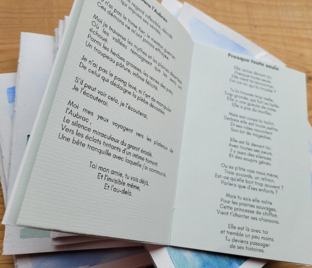 Un recueil des chansons de notre concert. Chaque livret est illustré à la main à l’aquarelle.