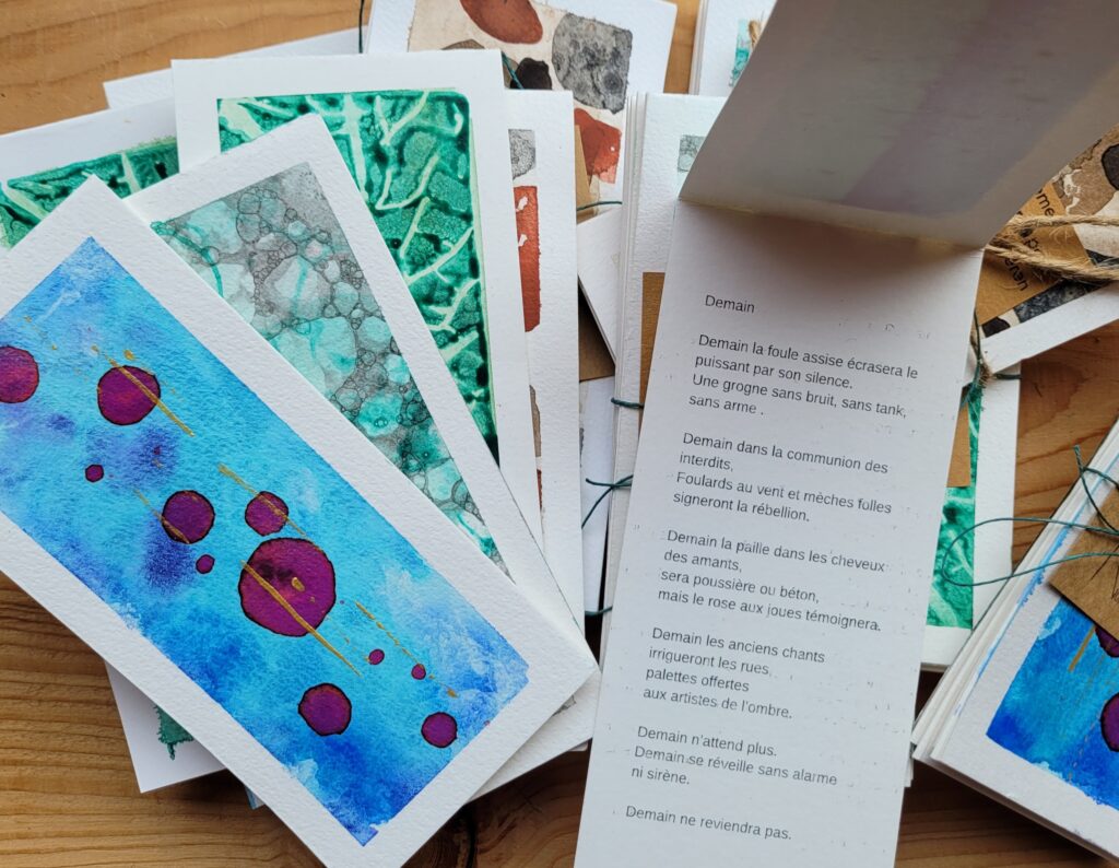 Cinq poèmes écrits et illustrés par Véro Van der Schueren. Chaque poème est illustré à la main avec différentes techniques.